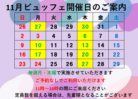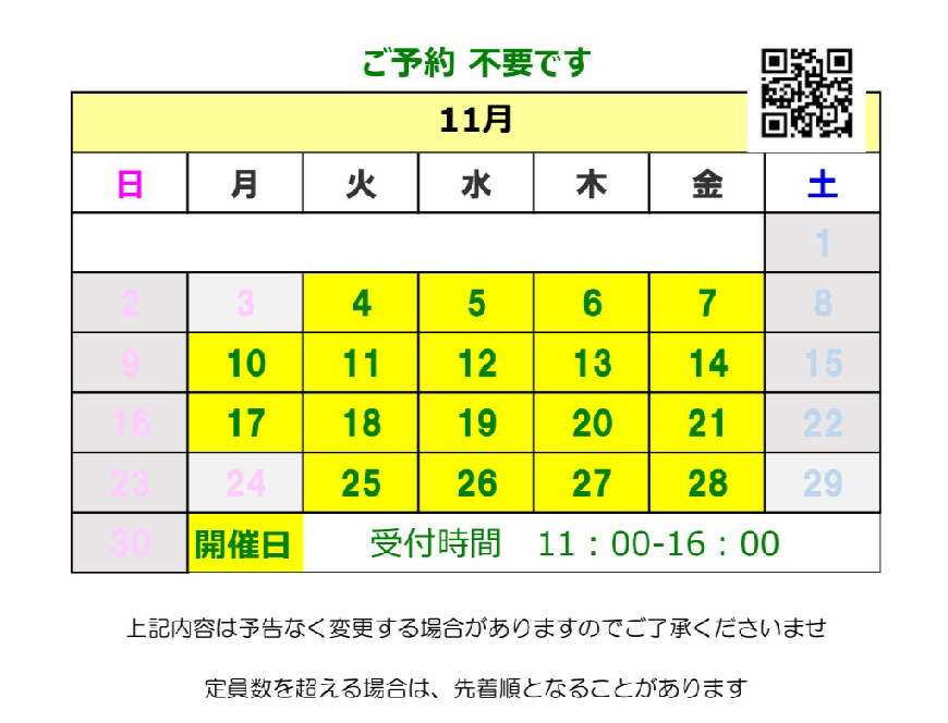 開催日:月曜日木曜日 開催しております (祝日はお休み)