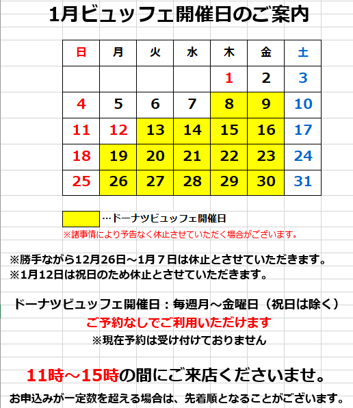2026年1月のドーナツビュッフェのご案内です。