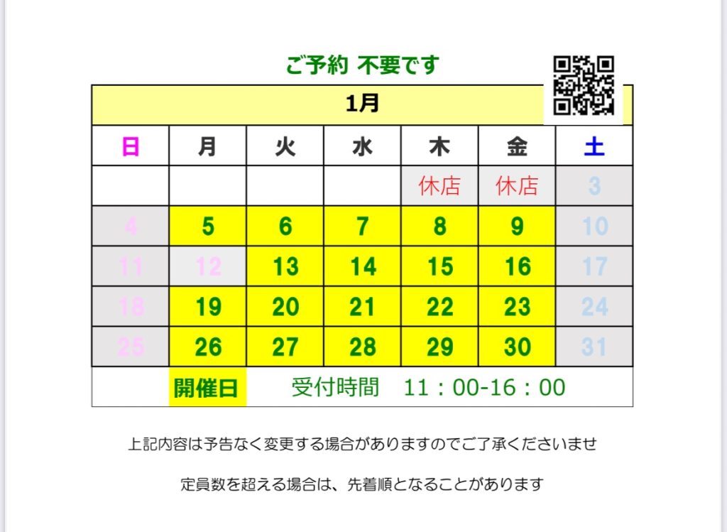 時間は11~18時(受付) 予約不要