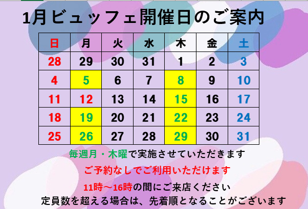 2026年 1月の岐阜地区のドーナツビュッフェスケジュール![]()