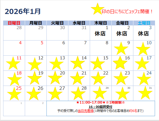 2026年 1月の浜松地区のドーナツビュッフェスケジュール![]()