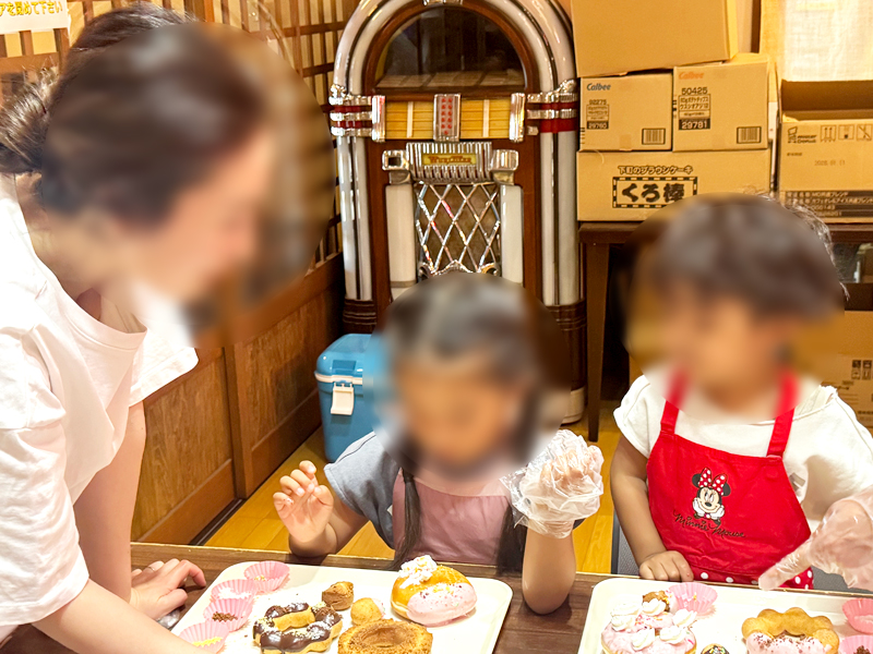 オリジナルのドーナツ作りやスタンプラリー、スイカ割りなど親子でたのしみました!